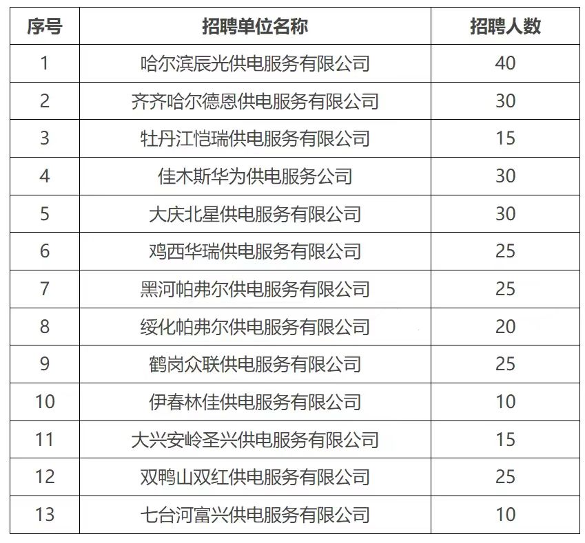 為進一步提高鄉(xiāng)村供電服務水平,結(jié)合供電服務公司發(fā)展需求,充實基層供電服務力量,黑龍江省各地供電服務公司組織開展2024年供電服務職工招聘工作,現(xiàn)將有關(guān)事項公告如下: