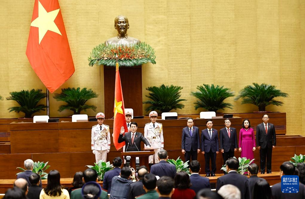 ??梁強(qiáng)隨后宣誓就職。他在發(fā)表就職演說時(shí)表示,將根據(jù)越南社會(huì)主義共和國憲法以及黨、國家和人民賦予的任務(wù),履行好國家主席的職責(zé),繼續(xù)保持和加強(qiáng)黨內(nèi)的高度團(tuán)結(jié),與全黨全軍一道弘揚(yáng)民族大團(tuán)結(jié)力量。