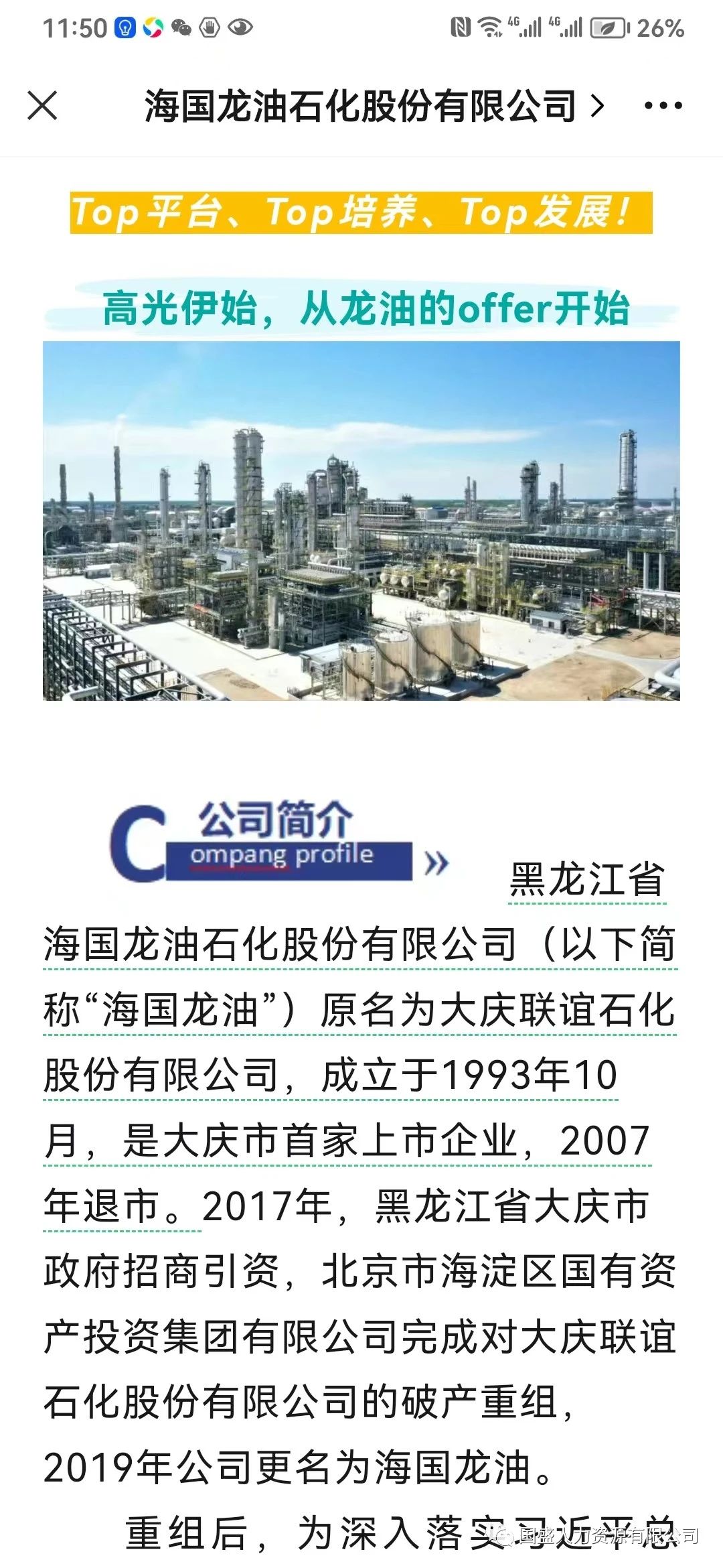17、黑龍江海國龍油石化招聘:待遇優(yōu)厚,全市通勤車,食堂宿舍。工作地點:大慶林源化工園區(qū)!
