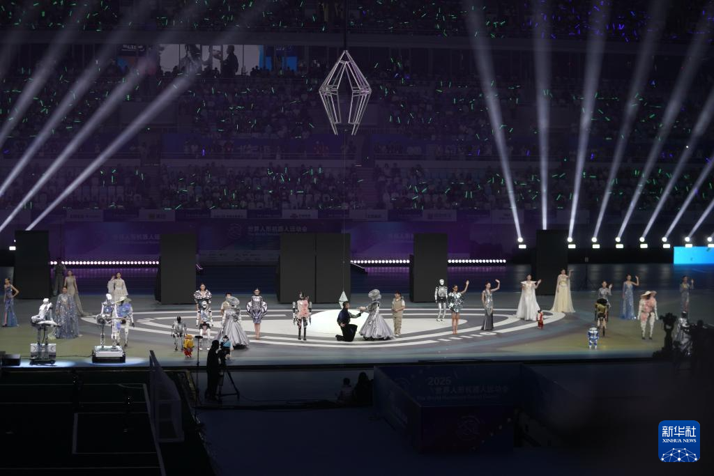 ??歌舞節(jié)目《歡迎來(lái)到碳基生命的世界》中,人類舞者與機(jī)器人以流暢協(xié)作演繹“碳基與硅基的對(duì)話”;服飾走秀節(jié)目《天工霓裳》則將非遺技藝與未來(lái)設(shè)計(jì)完美融合……14日的開(kāi)幕式上,超百支戰(zhàn)隊(duì)閃耀“冰絲帶”,各式機(jī)甲競(jìng)展風(fēng)采,機(jī)器人街舞、戲曲輪番登場(chǎng),更與專業(yè)街舞團(tuán)聯(lián)袂獻(xiàn)藝,生動(dòng)演繹科技與人類文明的碰撞交融。隨著舞臺(tái)中央的“智芯”裝置——鑲嵌藍(lán)色晶體芯片的金屬四棱錐被點(diǎn)亮,2025世界人形機(jī)器人運(yùn)動(dòng)會(huì)正式啟動(dòng)。