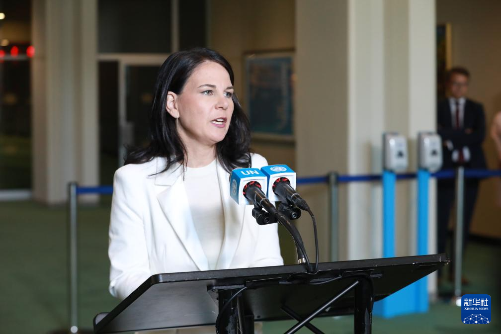 安娜萊娜·貝爾伯克當選第80屆聯(lián)大主席后向媒體發(fā)表談話。
